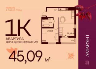 Общая площадь45,09 м²