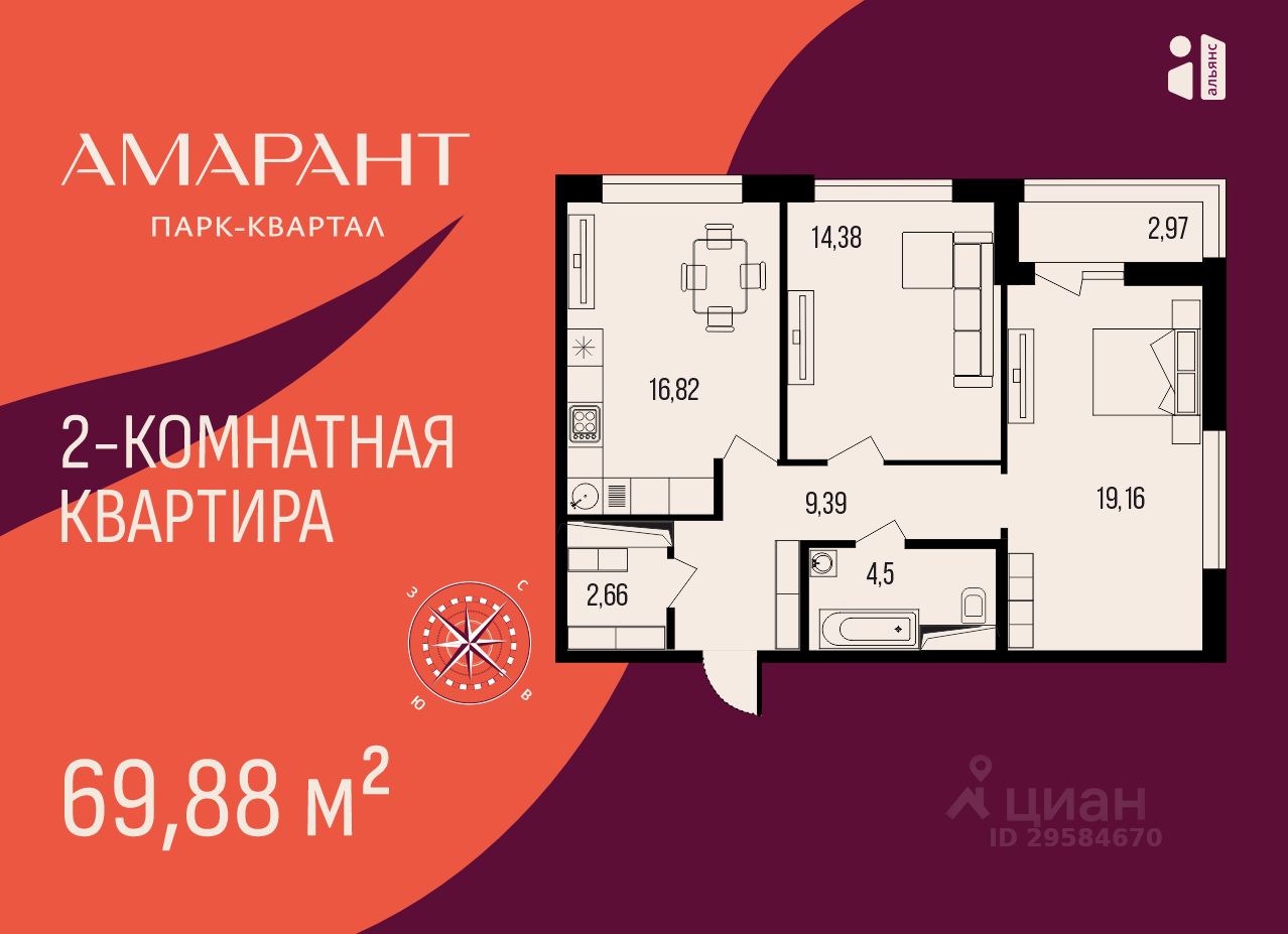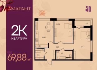 Общая площадь69,88 м²