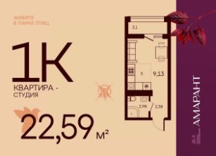 Общая площадь22,59 м²