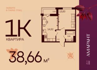 Общая площадь38,66 м²