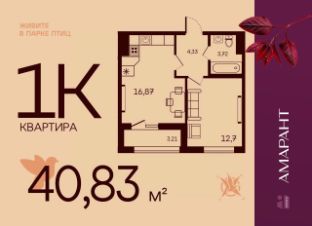 Общая площадь40,83 м²