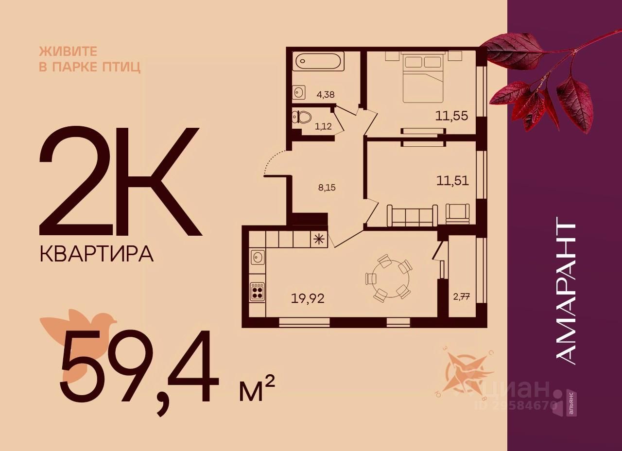 Общая площадь59,4 м²