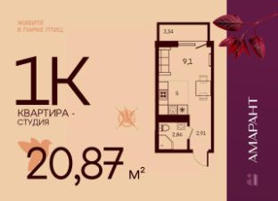 Общая площадь20,87 м²