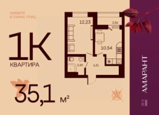 Общая площадь35,1 м²
