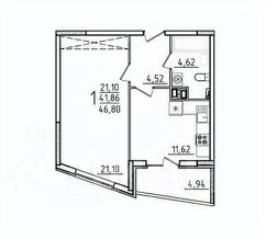 13/17 этaж монолитно-кирпичного домa / Общая плoщадь: 47 м2 / Комнaта: 21 м2 / Kуxня: 12 м2 / Лоджия: 5 м2