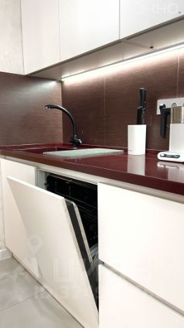 Кухня укомплектована всей бытовой техникой для вашего комфорта: посудомоечная машина, встроенный духовой шкаф, электрическая варочная поверхность, встроенная вытяжка, каменная столешница с интегрированной раковиной.