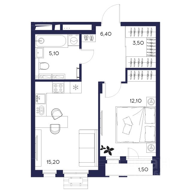 Общая площадь43,8 м²
