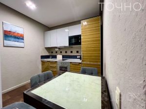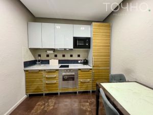 Кухня с отличным кухонным гарнитуром и встроенной качественной техникой.
