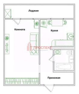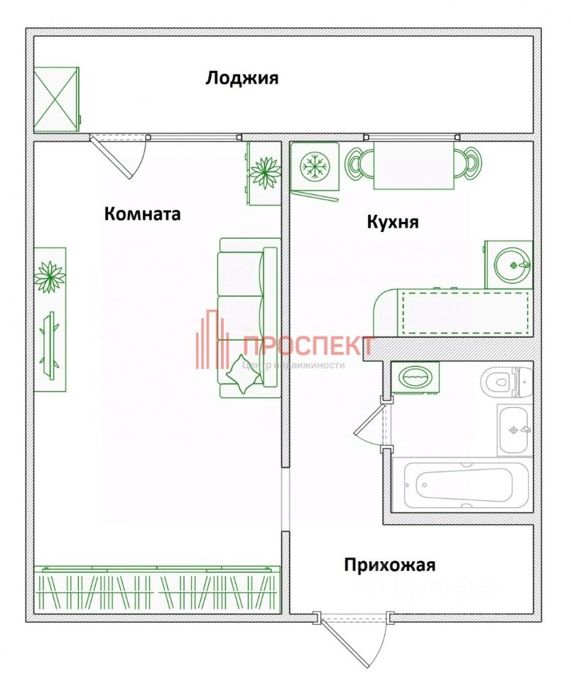 Площадь квартиры 35.2 кв.м. + лоджия ещё 7.5 кв.м.