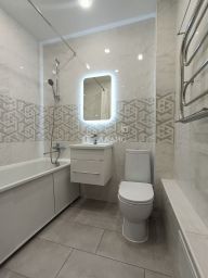 Квартира с евроремонтом, что позволяет сразу заселиться и наслаждаться уютом без дополнительных вложений. Качественные материалы и стильный дизайн интерьера создают атмосферу комфорта и гармонии. Новые межкомнатные двери, натяжные потолки, на полу качественный ламинат. Санузел выполнен в кафеле светлых тонов.