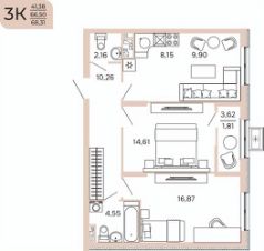 Общая площадь68,31 м²