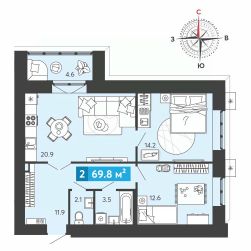 Продаётся 2-комнатная квартира в строящемся доме (дом 2 (Пегас)), срок сдачи: IV-кв. 2026, общей площадью 70 кв.м., на 4 этаже. ЖК "Созвездие" - это жилой комплекс комфорт-класса из шести домов (17, 25 и 30 этажей), расположенный на берегу озера и отвечающий последним технологическим стандартам.Двор ЖК "Созвездие" спроектирован закрытым, здесь будут космические цветы и беседки в виде звездных систем, необычные детские площадки и широкие дорожки в окружении зелени, зоны спорта и солярия.На территорию ЖК можно будет попасть через единую входную группу, где на первом этаже появятся пункт охраны, колясочные, установят почтовые ящики, обустроят комфортную зону для встречи гостей. На втором - соседский центр площадью 500 кв. м с детской и лаундж-зоной, игровым пространством и даже уютным кухонным уголком.