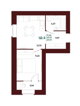 Общая площадь37,41 м²