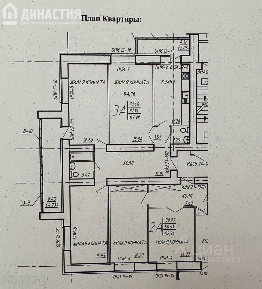 Жилая площадь: 51,4 м2