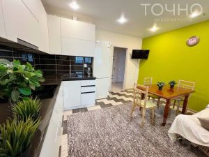 Квартира с хорошим ремонтом, мебелью и встроенной техникой! Большие комнаты, хорошая кухня с выходом на застекленный балкон. Сан. узел раздельный, отделка- современный кафель. Напольное покрытие плитка и ламинат.
