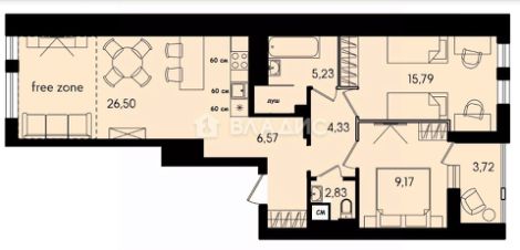 - Санузел: 1 раздельный и 1 совмещённый.