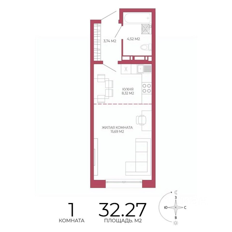 Продаётся 1-комнатная квартира в строящемся доме (Побочинская,63), срок сдачи: IV-кв. 2027, общей площадью 32.27 кв.м., на 2 этаже. Дизайнерская отделка.