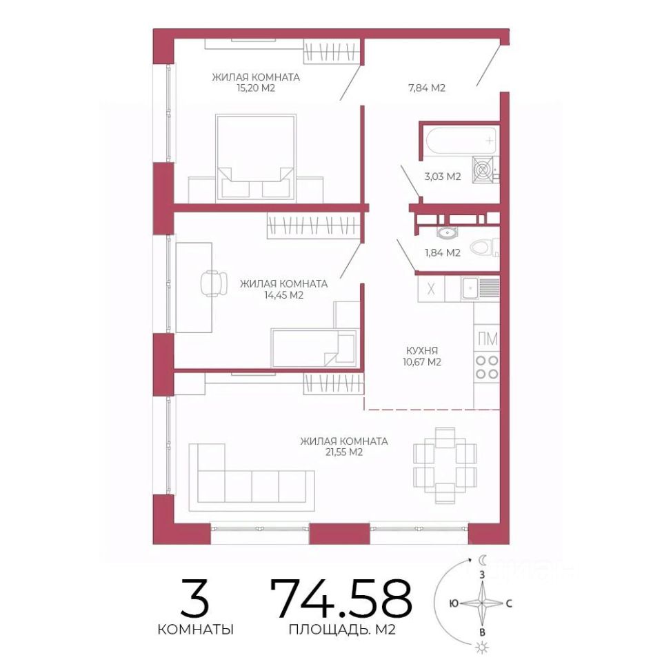 Продаётся 3-комнатная квартира в строящемся доме (Побочинская,63), срок сдачи: IV-кв. 2027, общей площадью 74.58 кв.м., на 3 этаже. Дизайнерская отделка.