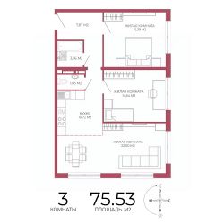 Продаётся 3-комнатная квартира в строящемся доме (Побочинская,63), срок сдачи: IV-кв. 2027, общей площадью 75.53 кв.м., на 5 этаже. Дизайнерская отделка.