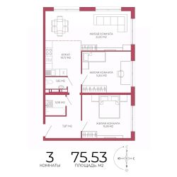 Продаётся 3-комнатная квартира в строящемся доме (Побочинская,63), срок сдачи: IV-кв. 2027, общей площадью 75.53 кв.м., на 6 этаже. Дизайнерская отделка.