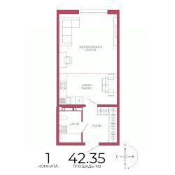 Продаётся 1-комнатная квартира в строящемся доме (Побочинская,60), срок сдачи: IV-кв. 2027, общей площадью 42.35 кв.м., на 6 этаже. Дизайнерская отделка.