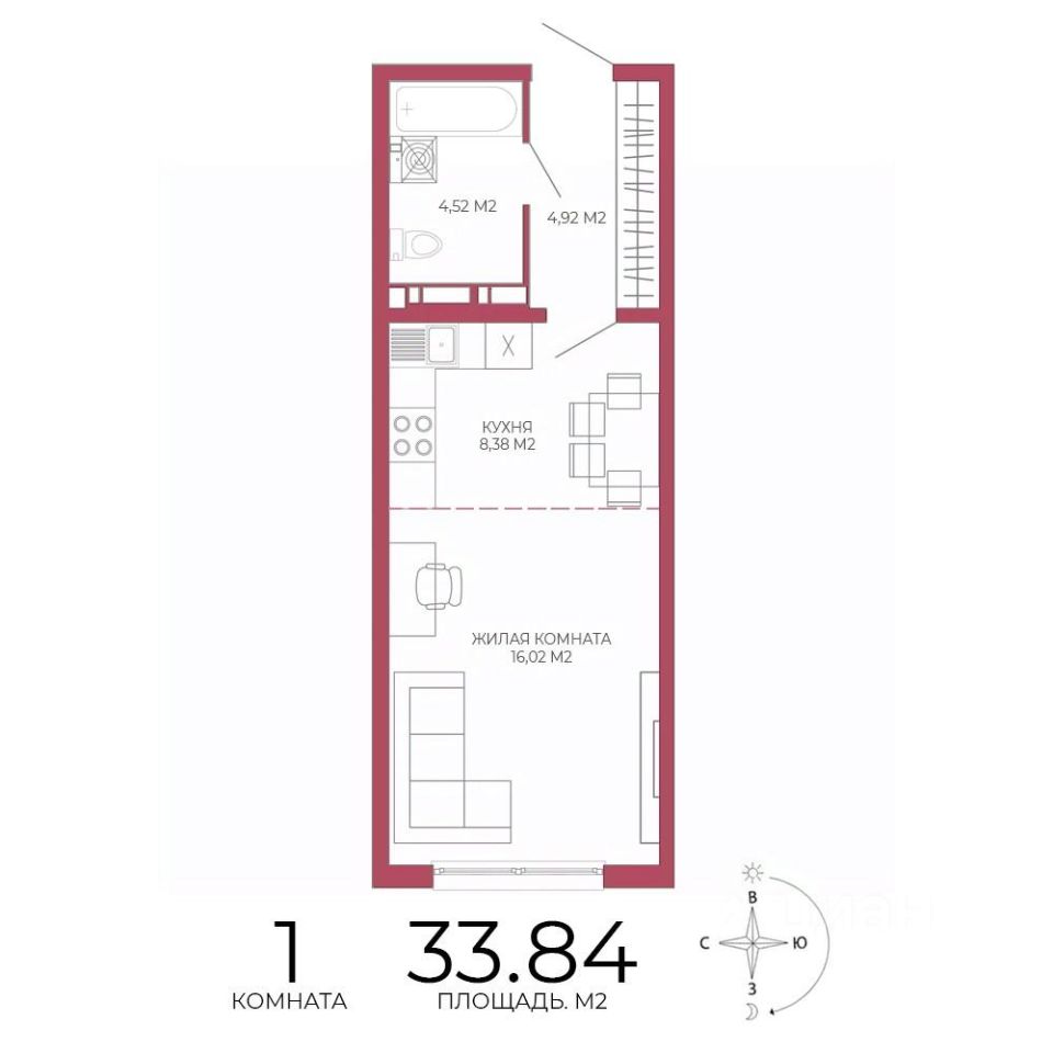 Продаётся 1-комнатная квартира в строящемся доме (Побочинская,60), срок сдачи: IV-кв. 2027, общей площадью 33.84 кв.м., на 7 этаже. Дизайнерская отделка.