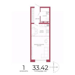 Продаётся 1-комнатная квартира в строящемся доме (Побочинская,60), срок сдачи: IV-кв. 2027, общей площадью 33.42 кв.м., на 2 этаже. Дизайнерская отделка.