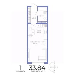 Продаётся 1-комнатная квартира в строящемся доме (Побочинская,60), срок сдачи: IV-кв. 2027, общей площадью 33.84 кв.м., на 8 этаже. Дизайнерская отделка.