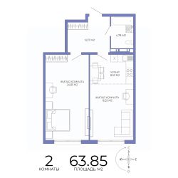 Продаётся 2-комнатная квартира в строящемся доме (Побочинская,60), срок сдачи: IV-кв. 2027, общей площадью 63.87 кв.м., на 9 этаже. Дизайнерская отделка.