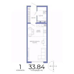 Продаётся 1-комнатная квартира в строящемся доме (Побочинская,60), срок сдачи: IV-кв. 2027, общей площадью 33.84 кв.м., на 9 этаже. Дизайнерская отделка.