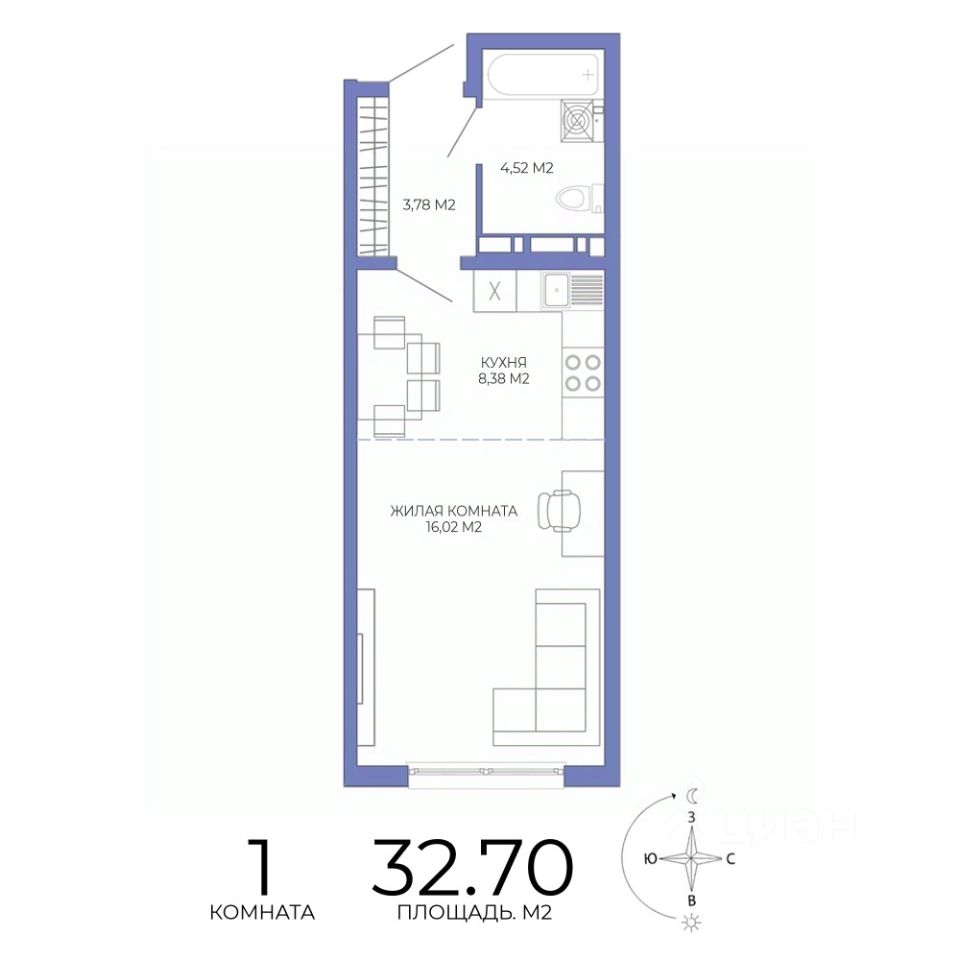 Общая площадь32,7 м²