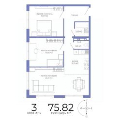 Продаётся 3-комнатная квартира в строящемся доме (Побочинская,60), срок сдачи: IV-кв. 2027, общей площадью 75.82 кв.м., на 9 этаже. Дизайнерская отделка.