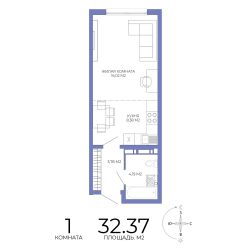 Продаётся 1-комнатная квартира в строящемся доме (Побочинская,60), срок сдачи: IV-кв. 2027, общей площадью 32.37 кв.м., на 9 этаже. Дизайнерская отделка.