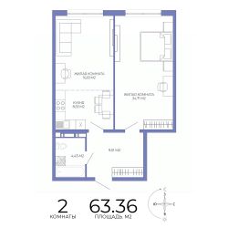 Продаётся 2-комнатная квартира в строящемся доме (Побочинская,60), срок сдачи: IV-кв. 2027, общей площадью 63.36 кв.м., на 4 этаже. Дизайнерская отделка.