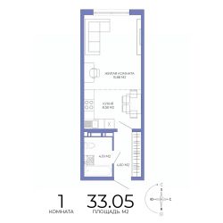 Продаётся 1-комнатная квартира в строящемся доме (Побочинская,60), срок сдачи: IV-кв. 2027, общей площадью 33.05 кв.м., на 4 этаже. Дизайнерская отделка.