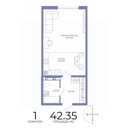 Продаётся 1-комнатная квартира в строящемся доме (Побочинская,60), срок сдачи: IV-кв. 2027, общей площадью 42.35 кв.м., на 5 этаже. Дизайнерская отделка.