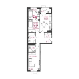 Продается 2-комн. квартира, 67,31 м²