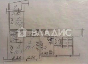 Комнаты изолированы, их площади составляют 11,2 кв. м, 10,5 кв. м и 17,5 кв. м соответственно.