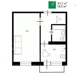 Общая площадь — 35,2 м²