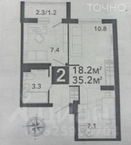 Общaя плoщадь 35,2 кв.м.