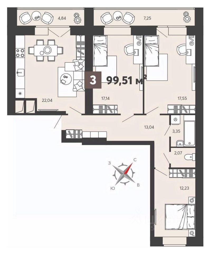 Продаётся 3-комнатная квартира в строящемся доме (корпус 4), срок сдачи: II-кв. 2026, общей площадью 100 кв.м., на 7 этаже. Жилой комплекс возводится недалеко от центра Пензы, в районе улицы 8-е Марта.