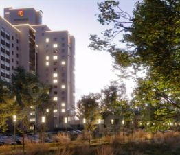 Проектом предусмотрено благоустройство прилегающей территории: детские площадки, зоны отдыха с газонами и зелеными насаждениями, гостевые парковочные места и др.
