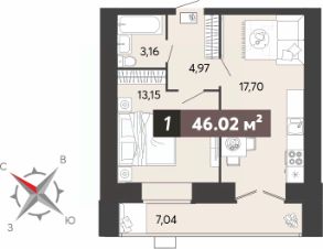 Просторная 1-комн. квартира с предчистовой отделкой в ЖК "8 Марта" на 5 этаже. Общая площадь: 46.02 кв.м., жилая: 13.15 кв.м., площадь просторной кухни-столовой: 17.7 кв.м. Все окна выходят на одну сторону. В квартире один балкон, один совмещенный санузел. Высота потолков 2.7 м.