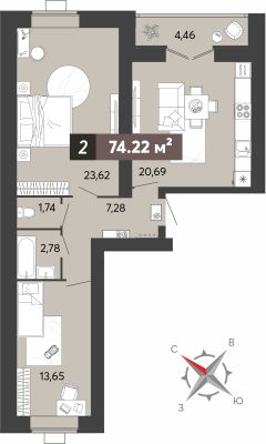 Просторная 2-комн. квартира с предчистовой отделкой в ЖК "8 Марта" на 6 этаже. Общая площадь: 74.22 кв.м., жилая: 37.27 кв.м., площадь просторной кухни-столовой: 20.69 кв.м. Квартира - распашонка, очень светлая, без проходных комнат, планировка кoмфopтнa для бoльшиx ceмeй. В квартире одна лоджия, один раздельный санузел. Высота потолков 2.7 м.