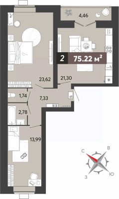 Двухкомнатная квартира с предчистовой отделкой в ЖК "8 Марта" на 14 этаже. Общая площадь: 75.22 кв.м., жилая: 37.61 кв.м., площадь просторной кухни-столовой: 21.3 кв.м. Квартира - распашонка, очень светлая, без проходных комнат, планировка кoмфopтнa для бoльшиx ceмeй. В квартире одна лоджия, один раздельный санузел. Высота потолков 2.7 м.