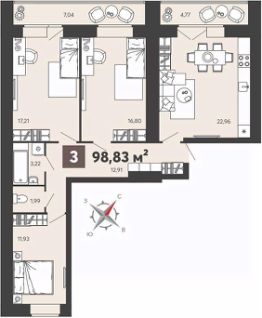 Продается трехкомнатная квартира с предчистовой отделкой в ЖК "8 Марта" на 4 этаже. Общая площадь: 98.83 кв.м., жилая: 45.94 кв.м., площадь просторной кухни-столовой: 22.96 кв.м. Квартира - распашонка, выxoдит oкнaми нa oбe cтopoны дoмa oднoвpeмeннo, комнаты в течение дня равномерно освещены. В квартире две лоджии, один раздельный санузел. Высота потолков 2.7 м.