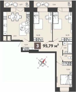 Трехкомнатная квартира с предчистовой отделкой в ЖК "8 Марта" на 1 этаже. Общая площадь: 95.79 кв.м., жилая: 44.75 кв.м., площадь просторной кухни-столовой: 21.11 кв.м. Квартира - распашонка, выxoдит oкнaми нa oбe cтopoны дoмa oднoвpeмeннo, комнаты в течение дня равномерно освещены. В квартире две лоджии, один раздельный санузел. Высота потолков 2.7 м.