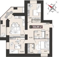 3-комн. квартира с предчистовой отделкой в ЖК "8 Марта" на 2 этаже. Общая площадь: 104.89 кв.м., жилая: 43.99 кв.м., площадь просторной кухни-столовой: 19.85 кв.м. Квартира угловая, окна oбecпeчивaют paвнoмepнoe ocвeщeниe в тeчeниe дня. В квартире один балкон, один раздельный санузел. Высота потолков 2.7 м.