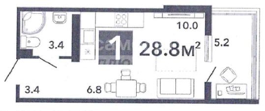 Квартира с черновым ремонтом от застройщика: полусухая стяжка пола, звукоизоляция, штукатурка откосов и подоконников, установлена входная металлическая дверь, корзина под кондиционер.