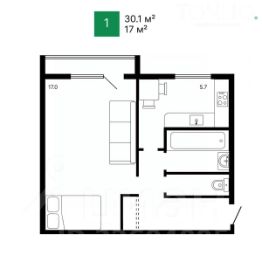 Общая площадь 30.1 кв.м